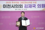 이천시의회 김재국 의원이 10일 경기도의회 대회의실에서 열린 '2025년 우수의정 행정대상’시상식에서 '2025년 우수의정 그랜드마스터상’을 수상하며, 이천시 발전과 사회적 약자 보호를 위해 펼쳐온 활발한 의정활동을 대내외적으로 인정받았다. 경기도일간기자단이 주최한 이번 수상은, 시민의 삶의 질 향상을 위한 확고한 소명의식을 바탕으로 민생 현장을 세심히 살피며 민생 중심의 의정활동에 기여한 우수 의원에게 수여된다. 김재국 의원은 이천시 전체의 균형 발전과 현안 해결을 의정활동의 최우선 과제로 삼고, 다양한 지역 현장을 직접 찾아 시민의 목소리를 청취해 정책과 조례에 적극 반영해 왔다. 특히 사회적 약자에 대한 각별한 관심을 바탕으로 발달장애인 복지 및 사회활동 보험 지원, 장애인가정 출산지원금 지원 등에 관한 조례를 발의해 이천시 장애인의 실질적 권익 보호와 생활 향상 기반을 마련했다. 이러한 입법 활동은 제도적 공백을 보완하고, 도움이 필요한 시민에게 신속하고 체계적인 지원이 이루어질 수 있는 기반을 마련했다는 점에서 높은 평가를 받고 있다. 또한 김 의원은 회기마다 적극적이고 날카로운 행정사무감