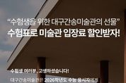 대구간송미술관이 14일부터 26학년도 수능 수험생을 대상으로 다양한 혜택을 제공한다. 수험표를 지참한 수험생에게는 미술관 입장료 최대 30% 할인 혜택(동반 1인 포함)이 제공되며, 이벤트 참여 시 다양한 기념품도 증정된다. 이와 함께 방송인 서경석, 영화감독 이준익이 참여하는 ‘간송예술강좌’를 개최하여 전시에 대한 다양한 의미를 되돌아보는 특별한 시간을 가진다. 수험생 대상 입장료 30% 할인(동반 1인 포함) 및 참여형 이벤트 진행, 11월 14일부터 수험생 입장료 30% 할인은 수능 다음날인 11월 14일부터 12월 31일까지 진행된다. 현재 미술관에서 전시 중인 광복 80주년 기념 기획전 《삼청도도 – 매·죽·난, 멈추지 않는 이야기》와 상설전 모두 할인 혜택을 받을 수 있다. 수험생 우대를 받기 위해서는 수능 수험표, 수시 합격증 등 수험생임을 증명할 수 있는 증빙서류를 매표소에 제시하면 된다. 이와 함께 미술관은 다양한 참여 이벤트를 마련했다. 연말까지 수험생 우대를 받고 입장한 선착순 250명에게 간송 대표 소장품이 담긴 컬러링 북을 선물한다. 더불어 대구간송미술관 카카오톡 채널 구독 인증, 관람