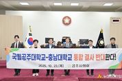 공주시의회는 10월 23일 제261회 임시회 제2차 본회의에서 송영월 의원이 대표 발의한 '국립공주대학교와 충남대학교 통합 반대 결의안'을 채택했다. 이번 결의안은 국립공주대학교와 충남대학교의 통합을 전제로 한 글로컬대학 사업이 예비 선정되고, 2028년 통합대학 출범 일정까지 제시된 상황에서, 지역사회와 대학 구성원의 충분한 의견 수렴 없이 추진되고 있다는 점에 대한 우려를 담고 있다. 이는 공주시민의 권익과 지역 균형발전에 심각한 영향을 미칠 수 있다는 점을 지적한 것이다. 공주시의회는 결의문을 통해 △일방적·졸속적 통합 추진 반대 △교육부 및 양 대학에 공론화 및 의견 수렴 촉구 △국립공주대학교의 독립성과 자율성 보장 등을 결의했다. 임달희 의장은 “국립공주대학교는 공주의 역사와 전통, 그리고 지역의 정체성을 상징하는 핵심 대학으로, 시민과 함께 성장해온 소중한 지역 자산”이라며, “대학의 독립성과 지역 균형발전을 지켜내기 위해 시의회가 끝까지 함께할 것”이라고 강조했다. 결의안을 발의한 송영월 의원은 “이번 결의안은 공주시민의 뜻을 바탕으로 마련된 것으로, 공주대의 자율성과 학문적 기반을 보