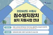 수원특례시가 침수가 우려되는 주택·소규모 상가에 침수방지장치 설치를 지원한다. 지원 대상은 침수 이력·우려가 있는 공동주택·소규모 상가·단독주택이다. 우선순위는 ▲과거 침수 피해가 발생했던 건물(최근 피해 건물 우선 지원) ▲수원시 자연재해저감종합계획 내수재해 위험지구(10개소) 내 건물 ▲침수 피해 위험도가 높다고 우려되는 건물(주변 배수 여건 고려)이다. 침수방지장치 설치 지원사업 참여를 원하는 시민은 수원시 홈페이지 시정소식 게시판에서 ‘침수방지장치 설치 지원사업’을 검색해 신청 서식을 내려받아 작성한 후 방문(수원시청 본관 1층 재난대응과) 또는 전자우편으로 제출해야 한다. 지원 대상으로 선정된 신청자가 침수방지장치를 설치한 후 보조금을 신청해야 한다. 선정 결과는 개별 통보한다. 침수방지장치 설치비의 최대 80%를 지원한다. 지원 금액은 단독주택·소규모 상가는 최대 200만 원, 공동주택은 최대 1000만 원이다. 예산이 소진되면 사업이 조기에 마감될 수 있다.
