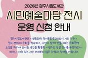 청주시립도서관은 시민 누구나 쉽고 편하게 문화를 향유하고 시민이 함께 만들어가는 문화환경을 조성하기 위한 ‘2026년 시민예술마당 전시’ 운영자를 모집한다고 8일 밝혔다. 시민예술마당은 도서관 1층 다목적실(276㎡)에서 도서 열람 공간과 함께 운영된다. 개인, 동아리 등 재능 있는 시민이면 누구나 참여 가능하다. 참여 시민들은 다양한 예술 작품을 타공판이 설치된 벽면과 단상 위를 활용해 작품을 전시할 수 있다. 도서관은 2026년 2월부터 12월까지 전시 공간을 제공할 계획이다. 다만, 도서관 자체 행사로 인해 2026년 9월과 10월에는 이용할 수 없다. 청주시립도서관 관계자는 “시민들이 스스로의 재능과 창작 활동을 공유하고, 도서관이 지역사회 문화 플랫폼으로 기능할 수 있도록 지속적으로 지원하겠다”며 “재능 있는 시민 여러분의 많은 참여를 바란다”고 말했다.