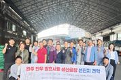 완주군의회 김재천 부의장이 15일 강원도 홍천군 사랑말 한우영농조합법인을 방문해 선진 발효사료 가공시설 운영 사례를 벤치마킹했다. 이번 견학은 완주 지역 축산단체와 관련 기관 관계자 등 총 20여 명이 함께한 가운데, 발효사료 생산공정과 운영 시스템을 직접 확인하며 향후 완주군 한우산업의 발전방향을 모색하기 위해 마련됐다. 참석자들은 사랑말 한우영농조합법인 나중구 대표로부터 법인 운영 사례, 사료 생산공정, 유통체계 및 품질관리 노하우에 대한 설명을 듣고, 현장을 둘러보며 선진 운영 시스템의 효율성과 차별화된 관리기법을 공유받았다. 사랑말한우 영농조합법인은 2010년 준공 이후 일일 100톤 규모의 TMR(배합사료) 생산시설을 운영하며, 도체등급 1++ 70% 이상이라는 탁월한 품질 성과를 유지하고 있는 선진 사례로 평가받고 있다. 김재천 부의장은 “이번 벤치마킹을 통해 발효사료 가공시설이 축산농가의 생산성과 품질 경쟁력 향상에 얼마나 중요한 역할을 하는지 직접 확인할 수 있었다”며, “완주군의 한우산업이 지속가능하게 성장하기 위해서는 고품질 사료 기반 구축과 더불어, 농가 간 협업과 혁신적인 유통