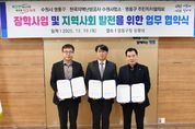 수원특례시 영통구는 지난 18일, 한국지역난방공사 수원지사, 구 주민자치협의회와 상호 협력을 바탕으로 지역 미래인재 육성을 위한 장학사업 협약을 체결했다. 이번 협약은 지역 내 학업 의지가 높으며 경제적 지원이 필요한 학생들을 지원하고, 주민과 기관이 함께 성장하는 지역 공동체의 기반을 마련하기 위해 추진됐다. 한편 한국지역난방공사는 내년도 장학사업이 보다 내실 있게 추진될 수 있도록 협약 체결과 함께 장학금 500만 원을 기탁했다. 해당 장학금은 사회복지공동모금회를 통해 관내 학생 가운데 도움이 필요한 대상자를 절차에 따라 선정한 뒤 전달될 예정이다. 한국지역난방공사 김진만 수원지사장은 “지역과 상생하는 공기업으로서 사회적 책임을 꾸준히 실천하고자 한다”며 “이번 장학금이 학생들의 학업과 미래 설계에 작은 힘이 되기를 바란다”고 말했다. 또한 장대현 구 주민자치협의회 회장은 “주민이 중심이 되어 지역 인재를 응원하고 지역 빌전에 기여할 수 있어 뜻깊다”며 “앞으로도 책임감을 가지고 장학사업 및 다양한 협력 사업을 성실히 수행하겠다”고 전했다. 장수석 영통구청장은 “이번 협약은 민·관·