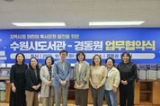 수원시도서관과 사회복지법인 경동원은 14일 경동원에서 ‘교류 협력을 위한 업무협약’을 체결했다. 공공도서관과 지역 복지기관이 함께 어린이의 독서 접근성을 높이고, 독서 친화적 성장환경을 조성하기 위한 협약이다. 수원시도서관은 경동원 어린이를 위한 독서 활동 프로그램과 도서 기부, 독서 서비스, 공연 등 다양한 독서문화 진흥 사업을 추진할 계획이다. 두 기관은 지역사회 어린이 보육 기관과 연계해 창의력과 표현력을 키울 수 있는 독서교육 프로그램을 운영하고, 교육·문화 협력을 위한 지속 가능한 교류 체계를 이어가기로 했다. ‘아이들을 위한 스토리텔링과 책놀이’ 프로그램을 10월 14일부터 11월 4일까지 매주 화요일 경동원에서 진행한다. 스토리텔링과 책놀이로 어린이의 창의력 발달을 돕고, 교사의 소통 능력을 높이는 내용으로 구성됐다. 이날 협약식에는 김병수 도서관사업소장, 신승주 경동원장, 이명옥 선경도서관장 등이 참석했다. 김병수 도서관사업소장은 “이번 협약은 어린이들의 독서 환경 격차를 줄이고, 누구나 동등하게 독서문화의 혜택을 누리도록 하기 위한 공동의 약속”이라며 “수원시는 앞으로도