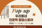 (재)부산진문화재단은 지역문화와 인문 감성을 결합한 2025 중장년 인문프로그램 ‘우리동네 인문학 팝업스토어’를 오는 11월 19일부터 12월 14일까지 전포밭개마을센터에서 운영한다고 밝혔다. 이번 팝업스토어는 전포동의 일상과 기억을 주제로 예술·기록·공예·건축·전통주 등 다양한 콘텐츠를 시민이 직접 체험할 수 있도록 기획됐다. 프로그램은 총 4개 주제로 구성되며, 주차마다 지역 예술가 및 활동가와 협업을 통해 선보인다. △ 필아트×전포밭개마을센터(11.19.~11.23.) △ 서면미술관×故김진희 작가(11.26.~11.30.) △ 서면미술관×캘리토닉 건축사 유창욱(12.3.~12.7.) △ 제이케이크래프트×하마터면협동조합(12.10.~12.14.) 특히 이번 팝업스토어는 판매수익 전액을 전포동 발전기금으로 환원해 지역과 창작자·주민이 함께 만드는 지속 가능한 문화 순환 구조를 실현한다는 점에 의미가 크다. 재단은 이를 통해 인문정신문화의 생활 속 확산과 지역 커뮤니티 자생력 강화에 이바지할 것으로 기대한다고 전했다. 팝업스토어 운영시간은 팝업스토어별로 상이하며 자세한 내용