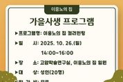 홍성군 고암이응노생가기념관은 오는 26일 오후 2시부터 4시까지, ‘가을사생 프로그램’을 운영한다고 밝혔다. 이번 프로그램은 가을 정취가 무르익은 이응노의 집 주변 풍경을 배경으로, 참가자들이 직접 자신만의 시선으로 자연의 색감을 담아내는 야외 사생 체험으로 구성됐다. 고암 이응노 화백의 예술 정신을 되새기며, 자연 속에서 창의성과 감성을 발휘할 수 있는 시간이 될 것으로 기대된다. 이번 행사는 고암학술연구실 교육실과 이응노의 집 일원에서 진행되며, 행사 당일 참가자들은 고암이응노생가기념관의 교육실에서 간단한 사전 오리엔테이션을 진행한 뒤, 이응노의 집 주변 일대에서 자유롭게 작품을 완성하는 시간을 갖게 된다. 참여 신청은 홍성군 통합예약시스템을 통해 가능하며, 프로그램에 대한 자세한 문의는 고암이응노생가기념관으로 하면 된다. 윤상구 문화유산과장은 “가을사생 프로그램은 자연의 변화 속에서 예술적 영감을 얻고, 고암 선생의 예술세계를 몸소 체험할 수 있는 의미 있는 시간”이라며, “가족 단위 참가자나 미술에 관심 있는 누구나 함께 참여해 예술의 계절을 즐기시길 바란다”고 전했다. 한편, 고암이응노생가