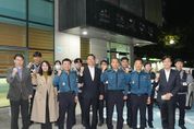 아산시의회는 지난 10월 22일 제80회 경찰의 날을 맞아 온천지구대를 방문해 지역 치안을 담당하는 경찰관들을 격려했다. 이날 방문에는 홍성표 의장과 명노봉 의원, 박효진 의원이 함께했으며, 지역 치안 현황을 점검하는 현장 근무자들의 의견과 애로사항을 청취했다. 의원들은 “지역사회의 치안 유지와 주민 안전을 위해 헌신하시는 경찰관 여러분께 깊이 감사드린다”며 “시민이 안심하고 생활할 수 있는 안전한 지역사회 조성을 위해 의회도 적극 협력하겠다”고 말했다. 홍성표 의장은 “시민의 안전과 생명을 지키기 위해 낮과 밤을 가리지 않고 현장에서 최선을 다하시는 경찰관 여러분께 진심으로 감사드린다“면서 ”아산시의회는 시민의 안전을 최우선 가치로 삼고, 경찰과의 긴밀한 협력을 통해 신뢰받는 안전도시 아산을 만드는 데 최선을 다하겠다“고 밝혔다. 사진 설명: 아산시의회 홍성표 의장과 명노봉 의원, 박효진 의원은 경찰의 날을 맞이하여 온천지구대를 방문해 경찰관들을 격려하고 있다.