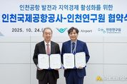 인천연구원과 인천국제공항공사 공항산업기술연구원은 10월 24일 11시 인천국제공항 제2여객터미널 회의실에서 연구협력 협약을 체결했다. 이날 협약식에는 양 기관 관계자 10여 명이 참석했으며, 양 연구원은 앞으로 ▲공항 관련 산업 및 접근교통 개선 연구 ▲문화·관광 활성화를 위한 정책개발 ▲연구성과 공유 및 공동 학술행사 개최 ▲연구네트워크 교류와 학술정보 공유 등 다양한 분야에서 협력을 추진할 계획이다. 특히 공항산업기술연구원의 인공지능 기반 공항 운영 및 수요예측 연구역량과 인천연구원의 지역경제 정책연구 전문성을 결합함으로써, 인천공항의 글로벌 경쟁력 강화와 지역경제 활성화에 기여할 것으로 기대된다. 인천국제공항공사 이학재 사장은 “이번 협약은 인천공항과 인천시가 상생할 수 있는 정책연구 개발의 좋은 기회라고 생각한다”라며, “앞으로도 공사는 다양한 연구기관들과의 협력을 통해 항공산업 및 지역경제 발전에 기여하는 데 앞장서겠다”라고 말했다. 박호군 인천연구원장은 “이 협약은 단순한 연구교류를 넘어, 항공산업 육성과 공항경제권 조성이라는 국가적 과제를 지역이 선도적으로 실현해 나가기 위한 전략적 협