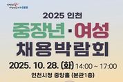 인천광역시는 중장년과 여성의 새로운 일자리 도전과 사회 참여 확대를 지원하기 위해 오는 10월 28일 인천시청 중앙홀에서 ‘2025 인천 중장년·여성 채용박람회’를 개최한다고 밝혔다. 이번 박람회는 올해 다섯 차례 진행된 ‘2025 인천 상설 채용박람회’의 마지막 일정으로, 인천시와 성평등가족부, 중부지방고용노동청 등 10개 기관이 공동으로 주최한다. 이번 행사에는 33개 기업이 참여해 현장 면접을 진행하고, 구직자들에게 실질적인 취업기회를 제공할 예정이다. 또한 채용관 외에도 ▲이력서 사진 촬영 ▲퍼스널컬러 진단 ▲인공지능(AI) 캐리커처 제작 등 구직자의 이미지 개선과 취업 경쟁력 향상을 위한 다양한 체험프로그램이 함께 운영된다. 연계행사로는 대회의실에서 ‘여성의 취·창업 역량 강화’를 위한 특별강연이 오전·오후로 두 차례 나뉘어 진행된다. 오전 1차 특강에서는 개그맨 출신 사업가 고명환이 강사로 나서 중장년층의 창업 전환을 주제로 실질적인 경험과 노하우를 전달하고, 오후 2차 특강에서는 과학 유튜버‘궤도’가 디지털 리터러시 향상과 인공지능(AI)을 활용한 구직·창업 전략에 대해 강