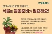 고양특례시는 반려식물의 건강한 겨울나기를 위한 맞춤 해법을 제공하는 ‘그린케어, 겨울 대비 반려식물 돌보기 행사’를 오는 10월 23일 오후 2시부터 5시 30분까지 백마 화사랑에서 개최한다고 밝혔다. 먼저 백마 화사랑 야외 공간에서는 고양시식물병원 전문가가 상주해 시민이 직접 가져온 반려식물에 대해 1:1 현장 진단을 제공하고, 병해충, 과습 등 식물의 상태에 따라 분갈이, 영양제 처방 및 맞춤형 월동 관리법을 안내한다. 별도 신청 없이 당일 현장 접수로 참여 가능하다. 실내에서는 ‘반려식물 동절기 핵심 관리법’을 주제로 체험형 특강이 진행된다. 겨울철 생육 관리 요령, 휴면기 대비 가지치기 및 분갈이 실습 등 내년 봄의 성장을 위한 전문적인 지식을 습득할 수 있다. 특강은 백마 화사랑 누리집에서 선착순 12명까지 신청할 수 있다. 시 관계자는 "겨울은 식물이 가장 취약해지는 시기인 만큼, 이번 행사를 통해 전문가의 과학적인 진단과 맞춤형 솔루션으로 반려식물과 더욱 건강하고 풍요롭게 겨울을 나시길 바란다”고 전했다. 행사에 대한 자세한 내용과 특강 신청은 백마 화사랑 누리집을 통해 확인할 수 있다