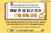 인천광역시교육청계양도서관은 인천시민을 대상으로 11월 7일부터 21일까지 시민저자학교 2기 프로그램 ‘매달 한 권 읽고 쓰기’를 운영한다. ‘매달 한 권 읽고 쓰기’는 한 권의 책을 깊이 읽고 그 안에서 발견한 생각과 감정을 글로 표현하는 시민 창작형 독서 프로그램으로 11월의 주제 도서는 김금희 작가의 ‘대온실 수리 보고서’이다. 참가자들은 작품을 중심으로 서로의 다름을 이해하고 글쓰기를 통해 자신과 세상을 성찰하는 시간을 갖는다. 참가 신청은 10월 27일부터 오전 9시부터 계양도서관 누리집에서 가능하며, 자세한 내용은 누리집 공지사항을 참고하거나 종합자료실로 문의하면 된다.