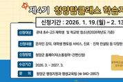 청양군이 지역 학생들에게 수도권 수준의 고품격 교육 콘텐츠를 제공해 도농간 교육 격차를 줄이고 인재 유출을 막기 위한 ‘제4기 청양 탑클래스 학습지원’ 사업을 본격 추진한다. 군은 지난 19일부터 오는 2월 13일까지 군 홈페이지 간편신청 시스템을 통해 제4기 학습지원 참여 신청을 받는다고 밝혔다. 모집 대상은 2026학년도 기준 관내 초등학교 4학년부터 고등학교 3학년에 재학 중인 학생으로, 총 440명의 인재를 선발할 계획이다. 세부 모집 인원은 온라인 강의 지원 분야에 초등학생 125명, 중학생 75명, 고등학생 100명이며, 심화 학습을 돕는 1:1 온라인 멘토링 분야에는 중학생 60명, 고등학생 80명을 배정했다. 선정 방식은 선착순 및 선발 심사를 병행해 공정하게 이뤄진다. 지방소멸대응기금을 투입해 추진하는 ‘청양 탑클래스’는 도농 간 교육 환경 차이를 극복하기 위한 청양군의 핵심 교육 사업이다. 선정된 학생들은 오는 3월부터 ▲과목별 온라인 동영상 강의 ▲명문대생과의 1:1 온라인 멘토링(중·고생) ▲오프라인 진로·진학 컨설팅 및 입시 상담 ▲방학 특강 등 입체