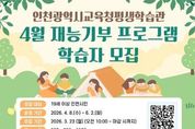 인천광역시교육청평생학습관은 오는 3월 23일부터 시민 강사의 전문 지식과 경험을 지역 주민과 공유하는 ‘4월 재능기부 프로그램’ 학습자를 모집한다. 이번 프로그램은 시민이 직접 강사로 나서 지역사회와 함께 전문성을 나누는 참여형 평생학습 과정으로, 4월 운영 강좌는 ‘쏙쏙 클래식’, ‘치매예방 힐링 퍼즐’, ‘한중 지명에 얽힌 역사문화와 지혜’, ‘요들송 배우기’ 등 4개 과정을 마련했다. 강좌는 4월 8일부터 운영되며, 수강 신청은 23일 오전 10시부터 평생학습관 누리집에서 선착순 진행된다. 자세한 사항은 누리집 공지사항을 확인하거나 평생교육부로 문의하면 된다.