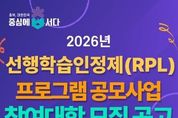 충북인재평생교육진흥원은 2026년 선행학습인정제(RPL) 프로그램 공모사업에 참여할 도내 대학을 공개 모집한다. 이번 사업은 충북시민대학 플랫폼을 활용한 도민의 실질적인 학습인정 체계 구축과 대학의 평생직업교육 활성화를 도모하고자 기획됐다. 사업 주요내용은 선행학습인정제(RPL) 프로그램 개발 및 캠퍼스 특화 프로그램 운영과 실제 선행학습인정제(RPL) 제도의 도입 및 활용이다. 보다 자세한 사항은 공고문을 통해 확인할 수 있다. 선행학습인정제(RPL)는 개인의 다양한 학습경험을 학점으로 인정받는 제도로, 이번 공모사업을 통해 대학의 특성을 반영한 선행학습인정제(RPL) 프로그램을 개발해 성인학습자의 대학 유입 확대가 기대된다. 충북인평원은 이번 공모를 통해 2개 대학을 선정하고, 기관당 최대 2천만원을 지원할 예정이다. 접수는 3월 31일까지이며, 사업설명회가 오는 10일 오후 2시 충북인평원 3층 대회의실에서 예정돼 있다. 세부 공고 내용과 신청 서식은 충북인평원 홈페이지를 통해 확인할 수 있다. 충북인재평생교육진흥원장은 “이번 공모사업을 통해 평생교육을 통한 대학의 학