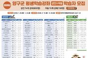 양구군은 1월 26일부터 2월 6일까지 12일간 상반기 평생교육 프로그램 학습자를 모집한다. 군은 지역주민에게 평생교육 기회를 제공하여 삶의 질 향상과 개인의 역량 강화를 위해 매년 상·하반기로 나누어 평생교육 프로그램을 운영하고 있다. 이번 상반기에는 성인강좌 74개, 아동강좌 15개 등 총 89개 정규과정을 개설한다. 성인대상 오프라인 강좌로는 △샌드위치창업반 △제과제빵기능사 △조경기능사자 △수묵풍경스케치 △한국화 △ 컴퓨터자격증반△옷만들기 △라인댄스 △원예테라피 △나는초보 흑백요리사 △ 시극교실 등이 운영된다. 또한 온라인 강좌로는 △꼭알아야할 부동산상식 △영어패턴익히기 △국가유산체험학습지도사 △잠자는재통틀깨우기(소잉아트) 등으로 신규 강좌를 포함해 다양하게 구성됐다. 아동 강좌는 △영어놀이터 △유아영어책놀이 △영어스피킹 △유아발레 등으로 5세부터 초등학교 2학년까지 신청이 가능하다. 아동의 오감을 자극하고 창의력을 키울 수 있는 프로그램 위주로 편성됐다. 교육은 3월 16일부터 6월 26일까지 양구군 평생학습관 등에서 진행된다. 수강료는 대면 강좌 월 1만원, 비대면 강좌는 월