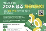 청주시는 오는 5월 14일 오후 2시 청주 올림픽기념국민생활관에서 '2026 청주채용박람회’를 개최한다고 30일 밝혔다. 이번 박람회는 청주시가 주최하고 청주시일자리종합지원센터가 주관하며, ‘AI로 내일을 열다’를 슬로건으로 진행된다. 시는 인공지능(AI) 기술을 채용 과정에 접목해 구직자들에게 미래지향적인 취업 기회를 제공하고, 지역 전략산업과 연계한 맞춤형 인재 매칭을 통해 지역 고용 활성화를 도모할 계획이다. 박람회에는 반도체, 바이오, 이차전지 등 청주시 전략산업 관련 기업을 포함한 우수기업 100개사가 참여하며, 800명 이상의 인력 채용을 목표로 진행된다. 이 가운데 60개 기업은 현장 부스를 운영해 구직자와 1대1 현장면접 및 채용상담을 진행한다. 비대면으로 참여하는 40여개 기업은 구인 조건에 맞는 구직자의 서류접수 대행을 통해 채용 절차를 이어갈 예정이다. 구직자를 위한 다양한 취업 지원 프로그램도 마련된다. 최신 채용 흐름을 반영한 ‘AI 혁신 체험관’에서는 AI 기술을 활용한 자기소개서 작성, 모의면접, 맞춤형 컨설팅 등을 제공한다. 또한 ‘취업서포트관’