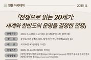 인천광역시교육청중앙도서관은 시민들의 인문학적 소양을 높이고 평화의 가치를 확산하기 위해 오는 11월 ‘인문 아카데미’를 운영한다. 이번 아카데미는 ‘벌거벗은 세계사’, ‘역사저널 그날’ 등에 출연한 류한수 상명대학교 교수를 초청해 ‘전쟁으로 읽는 20세기: 세계와 한반도의 운명을 결정한 전쟁’을 주제로 11월 6일부터 27일까지 매주 목요일 오후 7시, 4회에 걸쳐 진행된다 류 교수는 제2차 세계대전의 배경과 전개 과정을 세계사적 시각에서 살펴보며, 전쟁이 한반도와 세계 현대사에 미친 영향을 입체적으로 조명할 예정이다. 또한 11월 18일에는 인천난정평화교육원, 망향대, 대룡시장 등을 방문하는 평화체험 프로그램 ‘격강천리라더니!’를 운영해 시민들이 역사적 현장을 직접 둘러보며 평화의 소중함을 체험할 수 있도록 했다. 참가 신청은 10월 23일 오전 10시부터 중앙도서관 누리집에서 가능하며, 자세한 사항은 종합자료실로 문의하면 된다.