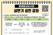 부산 동래구는 오는 2월 19일부터 동래읍성도서관과 안락누리도서관에서 지역 주민을 대상으로‘2026년 상반기 성인 강좌’수강생을 모집한다고 밝혔다. 이번 상반기 성인 강좌는 3월부터 5월까지 운영될 예정이며, 동래읍성도서관에서는 △[독서문화강좌] 문학으로 읽는 한국의 역사 △[평생학습센터 강좌] 영국 인문학을 운영하고, 안락누리도서관에서는 △[독서문화강좌] 그림책을 통한 마음 챙김 △[평생학습센터 강좌] 일상을 담는 수채화 일러스트를 진행한다. 신청은 2월 19일 오전 10시부터 동래읍성도서관과 안락누리도서관 누리집을 통해 선착순으로 가능하다. 강좌별 신청 시작일과 운영 기간이 다르므로, 자세한 사항은 각 도서관 누리집을 참고하거나 동래읍성도서관과 안락누리도서관으로 문의하면 된다. 동래구 관계자는“지역 주민들이 배움의 즐거움을 느끼고 인문학적 소양을 넓힐 수 있도록 다양한 프로그램을 준비했으니 많은 관심과 참여를 바란다”라고 말했다. [뉴스출처 : 부산시동래구]