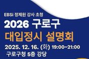 구로구는 수능이 끝난 수험생들의 정시 전략 세우기를 돕기 위해 ‘2026학년도 대입 정시 지원 프로그램’을 운영한다. 먼저, 구는 12월 16일 저녁 7시 구청 강당에서 ‘2026 구로구 대입 정시 설명회’를 개최한다. 관내 수험생과 학부모 150명을 대상으로 정제원 EBS 대표 강사가 진행한다. 설명회에서는 △수능 총평과 주요 대학 정시 합격선 예측 △동일 점수대 대학 간 지원 영역별 유불리 분석 등을 제시할 예정이다. 신청은 구로학습지원센터 누리집을 통해 선착순 접수하면 된다. 또한 구는 12월 15일부터 12월 26일까지 ‘일대일 개별 맞춤형 정시 상담’을 운영한다. 관내 거주하거나 재학 중인 수험생을 대상으로 전·현직 진로 진학 교사가 수험생의 수능 성적표와 학교 생활기록부를 분석해 맞춤형 입시 전략을 제시한다. 상담은 구로학습지원센터 1관(구로구 가마산로25길 21 구로구민회관)에서 저녁 6시 30분부터 8시 30분까지 진행되며, 목요일 상담은 구로학습지원센터 2관 (구로구 경인로 416 구로창의문화예술센터)에서 진행된다. 수험생 1인당 50분 상담을 받을 수 있으며, 상담 신청은 구로학습지원센터 누리