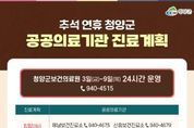 청양군보건의료원은 추석 명절 연휴인 3일부터 9일까지 7일간 응급 및 일반 환자의 진료 공백을 최소화하기 위해 응급진료 상황실을 운영한다고 밝혔다. 군 보건의료원은 연휴 기간에 응급환자의 상시 진료가 가능하도록 24시간 응급진료체계를 유지하고, ’문 여는 의료기관 및 약국‘을 지정해 지역 주민과 귀성객의 건강을 보호하고 불편을 최소화할 계획이다. ’문 여는 의료기관 및 약국‘ 현황은 응급의료포털 및 청양군청 홈페이지, 청양군보건의료원 홈페이지에서 확인 가능하며, 문의는 청양군보건의료원 당직실로 하면 안내를 받을 수 있다. 보건의료원 관계자는 “연휴 기간 군민과 귀성객 모두가 안전하고 건강한 명절을 보내실 수 있도록 빈틈없는 진료체계를 유지하겠다”고 말했다.
