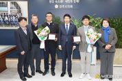 전주시의회 김성규(효자2·3·4동), 김정명(동서학,서서학,평화1·2동) 의원이 전주시의회 행정사무감사특별위원회가 뽑은 ‘2025 행정사무감사 우수위원’에 선정됐다. 12일 전주시의회는 남관우 의장과 김원주 운영위원장, 이남숙 행정감사특별위원장 등이 참석한 가운데 의장실에서 김성규, 김정명 의원에 대해 행정사무감사 우수위원 감사패 수여식을 가졌다. 행정사무감사특별위원회 소속 의원들은 최근 감사 활동이 우수한 의원 2명을 행정감사 우수위원으로 선정했다. 남관우 의장은 “두 의원이 행정사무감사에서 논리적인 정책 비판과 시정 전반에 대한 문제점 지적, 대안 제시 역할로 전주시 발전에 공이 많았다”고 평가했다. 지난달 18~26일 진행된 행정감사에서 김성규 의원은 실패한 드론축구월드컵, 무리하게 추진된 명품하천조성사업, 김정명 의원은 20억원 세금 날린 전주시 재활용시설 증설 취소, 장애인전용주차구역 과태료 개선 시급 등의 문제를 날카롭게 지적했다. 수상 의원들은 “시민의 뜻을 대변하는 의원으로서 당연히 해야 할 일을 했을 뿐인데 너무나 큰 상을 받게 된 것 같다”며 “전주시와 시민을 위해