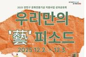 양천구는 오는 12월 2일부터 3일까지 양천문화회관에서 ‘2025년 문화진흥기금 지원사업 성과공유회(우리만의 藝(예)피소드)’를 개최한다고 1일 밝혔다. ‘문화진흥기금’은 지역 간 문화격차 해소와 고유문화 발전을 위해 조성된 것으로, 구는 지역 예술인의 창작 역량 강화 및 활동기반 확대를 위해 지원사업을 추진하고 있다. 전시와 공연으로 구성된 이번 성과공유회는 올해 문화진흥기금 지원을 받아 활동한 지역 청년·청소년·장애예술인 등이 한 해 동안 쌓아온 창작 성과를 구민에게 선보이는 자리다. 전시는 2일과 3일 양일간 양천문화회관 1층 로비와 전시실에서 열리며, 유리공예, 금속공예, 회화, 사진, 캘리그라피 등 다양한 장르의 작품이 소개된다. 주요 전시작으로는 ▲김소곤 작가의 유리공예 ‘Space VII’ ▲이성미 작가의 장신구공예 ‘Gaze Of Watcher’ ▲공현진 작가의 나무 꼭두 공예 ‘지옥꽃’ 등 공예 작품과 ▲이하진 작가의 ‘몽키 포레스트’ ▲이주영 작가의 ‘겨울기억’ ▲정진아 작가의‘ 우리 단지’ 등 회화 작품이다. 이외에도 박지환 작가의 사진과, 임미나 작가의 캘리그라피