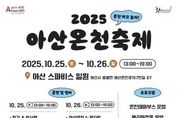 아산시가 주최하는 ‘2025 아산온천축제’가 오는 10월 25일부터, 26일까지 이틀간 아산스파비스 일원에서 열린다. 온천도시 아산을 대표하는 이번 축제는 공연, 체험, 플리마켓, 둘레길 이벤트 등 가족과 친구, 연인이 함께 즐길 수 있는 다양한 프로그램으로 꾸며진다. 아이들을 위한 키즈 디제잉과 버블 매직쇼, 뮤지컬 배우 홍지민의 갈라쇼, 남녀노소가 참여할 수 있는 아산온천 노래자랑 등 풍성한 볼거리를 마련했다. 또한 △3대 온천 및 온천수 화장품 홍보관 △온천수 활용 석고방향제·비누 만들기 체험부스 등 온천을 주제로 한 프로그램이 운영된다. 지역 로컬푸드와 먹거리 부스도 준비돼 저렴하고 품질 좋은 음식을 즐길 수 있다. 온천 둘레길(1.4㎞)에서는 버스킹 공연과 스탬프 완주 이벤트가 열려 시민과 관광객들에게 색다른 즐거움을 선사할 예정이다. 시 관계자는 “가을의 정취와 온천의 매력을 한껏 느낄 수 있는 ‘2025 아산온천축제’에 많은 시민과 관광객들의 관심과 참여를 바란다”고 말했다.