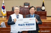 구리시의회가 1월 15일 구리시의회 의장실에서 대한적십자사 경기지사에 2026년도 적십자 특별회비를 전달하며 어려운 이웃을 위한 따뜻한 나눔 활동에 동참했다. 이날 전달식에는 신동화 의장, 대한적십자사 우광호 사무처장, 대한적십자사봉사회 경기도협의회 함정현 부회장, 대한적십자사봉사회 구리지구협의회 김복조 회장 등 10여 명이 참석했다. 구리시의회는 복지 사각지대에 놓인 취약 계층을 지원하고 긴급재난구호와 공공의료, 국제 협력 등 적십자사의 다양한 인도주의 활동에 동참하기 위해 매년 적십자 특별회비를 전달하고 있다. 신동화 의장은“어려운 여건 속에서도 취약 계층에 대한 지원과 봉사 활동으로 어려운 이웃들에 큰 희망이 되어주고 있는 대한적십자사의 노고에 깊은 감사를 드리며, 새로운 희망과 꿈을 꿀 수 있도록 도움이 필요한 곳에 등불이 되어주시길 바란다.”라며, “구리시의회도 지역사회에 따뜻한 나눔의 문화가 확산될 수 있도록 적극 노력할 것이며, 저도 의장으로서 또 적십자 회원으로서 인도, 공평, 중립, 독립, 자발적 봉사, 단일, 보편이라는 적십자 정신이 온 사회에 실현될 수 있도록 최선을 다하겠다”고 말했다. &