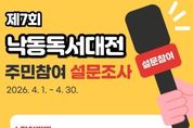 부산 북구는 오는 4월 1일부터 30일까지 한 달간 2026년 제7회 낙동독서대전 개최를 위한 구민 의견수렴 설문조사를 실시한다고 밝혔다. 이번 설문조사는 구민이 직접 만들어가는 독서 문화 축제를 구현하기 위한 것으로, 행사 주제, 초청 작가, 희망 전시도서 등 ‘2026년 낙동독서대전의 핵심 프로그램’에 대한 구민의 선호를 조사한다. 선정된 의견은 본행사와 연중행사에 적극 반영할 계획이다. 독서대전 주제는 만덕도서관과 백양근린공원에서 열리는 행사 특성을 반영해 지역 정체성을 살린 참신한 문구를 제안하면 된다. 초청 작가는 본행사 북토크에서 만나보고 싶은 작가를, 희망전시도서는 타인과 공유하고 싶은 ‘나의 인생책’을 추천하면 된다. 이와 함께 책과 독서를 주제로 한 체험 프로그램이나 원데이 클래스도 제안할 수 있으며, 우수 의견은 검토를 거쳐 본행사 체험 프로그램에 반영할 예정이다. 설문은 북구청 홈페이지(소통/참여 ' 구민참여 ' 설문조사)를 통해 온라인으로 참여할 수 있으며, 덕천·만덕·화명·금곡도서관 로비에 마련된 설문조사 보드를 이용한 오프라인 참여도 가능하다. 오태원 북구청장은 “낙동독서대
