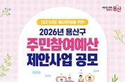 서울 용산구가 4월 24일까지 2027년 예산에 반영할 주민참여예산 사업을 공모한다. 생활안전, 문화, 복지 등 주민 생활과 밀접한 분야를 대상으로, 총규모는 10억 원이다. 일반사업은 사업당 2억 원 이내, 행사성 사업은 1500만원 이내로 제안할 수 있다. 단, 이미 시행 중인 사업이나 법령‧조례상 부적합한 사업, 구 소관사무가 아닌 사업, 특정 민간단체지원을 목적으로 하는 사업 등은 선정 대상에서 제외한다. 사업 제안은 용산구민과 용산구에 소재지를 둔 사업체 임직원이나 학생이라면 모두 가능하다. 신청은 기간 내 ▲구 누리집 ‘참여소통-주민참여예산제-용산구 예산 이렇게 사용해주세요!’ 게시판 ▲방문(용산구청 기획예산담당관 및 각 동주민센터) ▲우편(녹사평대로 150, 8층 기획예산담당관) ▲전자우편 중 편한 방법으로 제출하면 된다. 제안 양식은 구 누리집 ‘주민참여예산 게시판’에서 내려받을 수 있다. 접수한 제안 사업은 ▲동 지역 회의 ▲소관부서 검토 ▲주민참여예산위원회 심사 절차를 거쳐 최종 선정한다. 이후 구의회 심의를 통해 2027년 예산으로 확정할 예정이다. 주민참여예산 관련한 더 자세한 사항은 공고