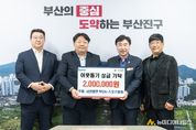 부산 부산진구는 11월 18일, (사)부산이스포츠협회(회장 지창우)에서 부산진구청을 방문하여 이웃돕기 성금 200만 원을 기탁했다고 밝혔다. 이날 전달식에 참석한 지창우 회장은 “겨울을 앞두고 경제적으로 어려운 이웃들에게 조금이나마 따뜻한 위로가 되기를 바라는 마음으로 회원들이 뜻을 모아 성금을 기부하게 됐다”라고 말했다. 김영욱 구청장은 “어려운 이웃들을 위해 나눔을 실천해 주셔서 감사드린다”라며 “보내주신 성금은 도움이 필요한 분에게 잘 전달하겠다”라고 화답했다. 한편, (사)부산이스포츠협회는 부산광역시의 이스포츠 발전을 목표로 설립된 단체로 이웃돕기를 위한 기금 마련 행사 및 벽화 그리기 후원 등 다양한 지역사회 나눔 활동을 실천하며 선한 영향력을 전파하고 있다.