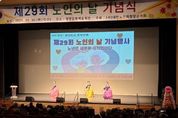 청양군은 30일 청양군 문화예술회관에서 10월 경로의 달을 맞아 대한노인회 청양군지회 주관으로 제29회 노인의 날 기념행사를 성대히 개최했다. 이날 행사에서는 노인복지 발전에 기여한 모범 어르신과 관계자 34명이 수상의 영예를 안았다. ▲국회의원 표창 4명 ▲도지사 표창 2명 ▲군수상 10명 ▲의장상 10명 ▲노인회 중앙회장상 2명 ▲노인회 연합회장상 1명 ▲청양군지회장상 5명 등이 전수됐다. 또한 청양에어로빅 동아리를 비롯한 6개 팀의 다채로운 축하 공연이 이어져 참석한 어르신들과 내빈들에게 즐거움과 감동을 선사했다. 김돈곤 군수는 “경로의 달을 맞아 함께 자리해주신 어르신들께 깊은 존경과 감사를 드린다”며 “앞으로도 어르신들이 행복하고 존경받는 지역사회를 만들기 위해 경로복지 증진에 최선을 다하겠다”고 밝혔다.