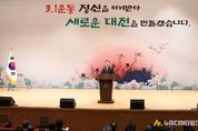 대전시는 3월 1일 오전 10시 30분 시청 대강당에서 제107주년 3‧1절 기념행사를 개최하고, 조국 독립을 위해 헌신한 순국선열과 애국지사들의 숭고한 희생과 애국정신을 기렸다. 행사에 앞서 시는 국립대전현충원을 찾아 순국선열과 독립운동가들의 넋을 기리는 참배를 진행했다. 이날 기념식에는 이장우 대전시장을 비롯해, 독립유공자 유가족, 보훈단체, 주요 기관‧단체장, 시민 등 500여 명이 참석한 가운데 ▲독립선언서 낭독 ▲기념사 ▲기념 공연 ▲3‧1절 노래 제창 ▲만세삼창 순으로 진행됐다. 특히 올해 독립선언서 낭독은 각 세대를 대표하는 인물들이 참여해 그 의미를 더했다. 낭독에는 양준영 광복회 대전지부장을 비롯해 광복회 유성대덕지회가 주최한 초등학생 나라사랑 백일장에서 2024년과 2025년에 대상을 수상한 조영준‧유소율 학생, 그리고 우송대학교 학군사관후보생이자 대전시 대학생 홍보단 남수현 학생이 참여해 3‧1운동의 숭고한 정신을 되새겼다. 이장우 시장은 기념사를 통해 “107년 전 인동장터와 유성장터에서 울려 퍼진 만세 함성이 오늘의 대전을 만든 뿌리”라며 “대전시는 단재 신채호 선생의 가르침