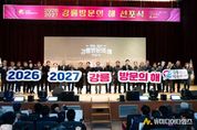 강릉시가 2027년까지 국내 관광객 5,000만 명, 외국인 관광객 50만 명 유치를 목표로 하는 ‘2026-2027 강릉 방문의 해’의 힘찬 출발을 공식 선언했다. 강릉시는 23일 금요일 오후 강릉시청 대강당에서 김홍규 강릉시장, 최익순 강릉시의회 의장, 최길영 국제관광도시 시민실천운동 추진위원회 위원장을 비롯해 유관 기관장과 시민 등 1,000여 명이 참석한 가운데 ‘2026-2027 강릉방문의 해’ 선포식을 성황리에 개최했다고 밝혔다. 이번 선포식은 ‘23년 강릉이 국제관광도시비전, ‘24년 국제관광도시 시민캠페인 추진위원회 발대식에 이어, 국제관광도시로 도약하기 위한 실천적 사업을 천명하고 전 시민의 참여 분위기를 조성하기 위해 마련됐다. 행사는 축하 공연, 추진계획 발표, 선포 퍼포먼스 및 BI(Brand Identity) 로고 공개 순으로 진행됐다. 심상복 문화관광해양국장은 ‘강릉 방문의 해’의 핵심 목표와 주요 추진 사업을 발표하면서 관광객이 좀 더 머물수 있도록 관광 콘텐츠를 고도화하고, 체류형 관광인프라와 특화 관광상품을 확대해 국내외 관광객 유치에 총력을 기울일 계획임을 밝혔다.