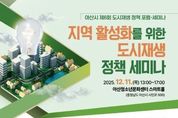 아산시는 한국도시재생학회(회장 이재우)와 공동 주관으로 오는 12월 11일 오후 1시부터 5시까지 아산시 청소년문화센터 스마트홀에서 ‘지역 활성화를 위한 도시재생 정책 세미나’를 개최한다고 밝혔다. 이번 세미나는 침체된 원도심을 활성화하기 위해 마련됐으며, 국토교통부 정우진 도시정책관의 ‘도시재생정책과 향후 과제’ 강연과 △재정 자율성 강화와 지속가능한 도시재생 △거점시설 활용한 주거지 정비와 원도심 활성화 전략을 주제로 한 기획세미나가 진행된다. ‘재정 자율성 강화와 지속가능한 도시재생’에서는 △사람공간E&C 최형선 대표의 ‘도시재생 지속 가능한 조직관리 및 지원센터의 역할’ △충북대 안상욱 교수의 ‘포괄보조 확대에 따른 지자체 재원확충과 활용’이 발표된다. 이어 ‘거점시설 활용한 주거지 정비와 원도심 활성화 전략’에서는 △LH토지주택연구원 김옥연 박사의 ‘저층주거지 활용과 원도심 성장거점화 전략’ △건축공간연구원 김영하 박사의 ‘도시재생으로 조성된 거점시설과 활성화 전략 및 청년 유입’ 등이 발표된다. 기획세미나 맞춤형 토론은 김호철 단국대 교수와 이재우 목원대 교수가 좌장을 맡고, 이경환 공주