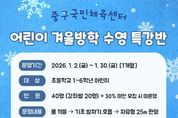 인천중구시설관리공단은 겨울방학 기간 초등학생을 대상으로 기초 수영 능력 향상과 건전한 여가선용 기회를 제공하기 위해 ‘겨울방학 어린이 수영 특강반’을 운영하고, 회원 모집을 추진한다고 18일 밝혔다. 이번 특강반은 2026년 1월 2일부터 1월 30일까지 중구국민체육센터 수영장에서 초등학교 1~6학년 어린이를 대상으로 운영된다. 강습 내용은 물 적응을 시작으로 기초 발차기·호흡법을 거쳐 자유형 25m 완영을 목표로 구성됐다. 회원 모집은 12월 26일부터 12월 31일까지 진행된다. 중구국민체육센터 홈페이지를 통한 온라인 선착순 접수로 운영되며, 모집 인원은 총 40명(반별 20명)이다. 강습은 주 3회(월, 수, 금) 운영되며 수강료는 44,000원이다. 공단 관계자는 “겨울방학 기간 어린이들이 즐겁게 수영을 배우며 기초 수영 능력을 기를 수 있도록 특강반을 준비했다”라면서 “많은 어린이가 참여해 건강한 방학을 보낼 수 있기를 바란다”라고 말했다. 어린이 수영 특강반 신청 등 프로그램과 관련해 더 자세한 사항은 중구국민체육센터 홈페이지 또는 안내데스크를 통해