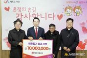 충남 서산시는 지난 11일 해미국제성지가 어려운 이웃 돕기 성금 1,000만 원을 전달했다고 밝혔다. 시는 이날 시청 시장실에서 이완섭 서산시장, 한광석 해미국제성지 주임신부 등이 참석한 가운데 기탁식을 개최했다. 성금은 연말연시 경제적 어려움을 겪고 있는 이웃에게 온정을 전달하고자 마련됐으며, 충남사회복지공동모금회를 통해 관내 어려운 이웃을 위해 활용될 예정이다. 해미국제성지는 지난 2020년 교황청으로부터 국내에서 유일하게 국제 성지로 승인받았다. 이후 순교자들의 신앙을 기리는 성지이자 국내외 순례객이 찾는 세계적인 순례지로 발돋움하고 있다. 또한, 매년 어려운 이웃 돕기 성금을 기부하는 등 지역 대표 나눔 공동체로서 역할을 확대하고 있다. 한광석 주임신부는 “순교자들의 사랑과 희생정신을 오늘의 이웃 사랑으로 이어가고자 신자들과 함께 정성을 모았다”라며 “힘든 시기를 보내는 이웃들에게 작은 위로와 희망이 되길 바란다”라고 말했다. 이완섭 서산시장은 “해미국제성지가 보여준 지속적인 나눔 실천이 우리 시의 큰 자랑”이라며 “기탁된 성금이 꼭 필요한 가정에 공정하