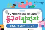 대구 동구청은 지정음식점 홍보와 외식산업 활성화를 위해 20일부터 11월 16일까지 4주간 ‘동구 지정음식점 홍보 SNS 인증샷 & 리뷰 이벤트’를 실시한다. 전 국민 누구나 참여 할 수 있는 이번 이벤트는 대구 동구맛집 홈페이지에서 이벤트 참여 식당을 확인 후 이용 한 뒤 리뷰를 등록하고 인증하면 된다. 리뷰 등록은 네이버 MY 플레이스 영수증 리뷰 또는 인스타그램에 음식사진과 함께 해시태그 3종(#업소명#대구동구지정음식점#동구맛집맛있어) 게시 2가지 방법으로 할 수 있으며, 이벤트 참여는 대구 동구맛집 홈페이지에서 해당 리뷰를 인증하면 된다. 참여자 중 추첨을 통해 매주 화요일 25명씩 총 100명의 당첨자를 선정해 ‘동구 맛집 명성을 담은 밀키트’ 10선 중 1개와 모바일 커피쿠폰(스타벅스)을 경품으로 증정한다. 윤석준 동구청장은 “이번 이벤트를 통해 동구 관내 다양한 지정음식점을 홍보하여 많은 분들이 동구의 맛을 즐기고 이를 통해 우리 지역 먹거리의 우수성을 널리 알리고 지역경제 활성화에 도움이 되길 바란다”고 말했다.