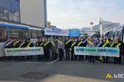 옥천군민의 발이 되어 옥천군 구석구석으로 군민을 실어나르고 있는 옥천버스운송(주)의 승무원 대표노동조합 조합원 40여 명이 10일 군민에게 안전하고 친절한 운행을 다짐하는 캠페인을 실시했다. 이번 캠페인은 지난 9월 추석을 앞두고 실시한 캠페인에 이은 두 번째 행사로 최근 크고 작은 교통사고 및 불친절 민원이 다수 발생하여 캠페인 활동을 통해 조합원 스스로 자성의 시간을 가지고 안전 운행 및 친절한 고객 응대를 군민에게 약속하기 위하여 실시했다. 특히 이번 캠페인은 옥천버스운송(주) 노조원 30여명과 옥천경찰서 신의철 서장 및 직원도 함께 참여하여 안전한 버스운행이라는 행사의 의미를 더했으며 거리 청결 활동도 실시했다. 옥천버스운송(주) 전송현 노조위원장은 “오늘 이 자리는 안전한 운행과 친절한 서비스를 제공하겠다는 우리 조합원들의 의지를 군민여러분께 다짐하는 자리로 앞으로도 이런 캠페인을 자주 실시하여 친절과 안전한 운행이 습관이 될 수 있는 계기로 삼겠다”라고 말했다. 참석자를 격려하기 위하여 캠페인에 참석한 옥천군 황규철 군수는 “하루도 쉬지 않고 버스 운행에 최선을 다하고 있는 옥천버스운송(