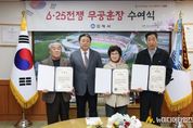 김해시는 10일, 6·25전쟁에 참전하여 혁혁한 전공을 세웠음에도 전후 혼란한 상황으로 인해 그동안 훈장을 받지 못했던 故김성수 하사, 故김동준상병, 故유경춘 상병 유족에게 국방부장관을 대신해 화랑무공훈장을 전수했다. 이는 국방부와 육군이 추진하는 ‘6·25 무공훈장 찾아주기 사업’을 통해 약 70여년만에 명예를 되찾아드린 의미 있는 자리였다. 故김동준 상병은 1952년 20세의 나이에 입대하여 강원 철원지구 전투에서 전사했다. 故유경춘 상병은 1952년 22세의 나이에 입대하여 강원 철원지구 전투에서 혁혁한 공을 세웠다. 또한 故김성수 하사는 1950년 19세의 나이에 입대하여 강원 금화지구 전투에서 큰 전공을 세웠다. 훈장을 전수받은 유족들은 "조국을 위해 헌신하신 선친들의 명예를 70년 만에 되찾아주신 것에 깊이 감사드리며, 이런 뜻깊은 자리를 마련해주신 시에도 감사드린다”고 말했다. 홍태용 김해시장은 “이제라도 참전유공자분들의 고귀한 희생을 기리고 명예를 회복시켜 드릴 수 있어 기쁘고 영광스럽다. 국가유공자들의 합당한 예우를 강화하고 그 명예를 드높이는데 시정을 집중하겠다”고 말