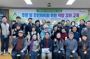 대전 서구 관저1동 주민자치회는 24일 저녁 동 행정복지센터에서 자치회 신규 임원 등을 대상으로 주민자치 역량 강화 교육을 진행했다. 이번 교육은 주민들이 지역 의제를 직접 발굴하고 기획·결정·시행·평가·환류에 이르는 주민자치 전 과정에 대한 이해를 높이기 위해 마련됐다. 최진숙 주민자치회장은 “우리 동 가치 찾기와 마을 계획에 관한 교육을 통해 주민자치의 힘을 기르는 모습을 보며 큰 보람을 느꼈다”며 “이번 체험이 우리 동에 새로운 활력과 즐거움을 주는 기회가 됐기를 바란다”고 말했다. 박성남 관저1동장은 “주민자치회가 지역 활성화를 위해 의미 있는 교육을 마련해 준 데 감사하다”며 “주민참여예산 사업 등이 주민 삶의 질 향상으로 이어질 수 있도록 적극 지원하겠다”고 말했다.