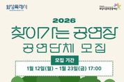 (재)화성시문화관광재단은 1월 12일부터 1월 23일까지 ‘2026 찾아가는공연장’ 참여 공연단체를 모집한다고 밝혔다. ‘찾아가는 공연장’은 화성시의 곳곳에서 다양한 장르의 공연을 제공함으로써 시민들의 일상적인 문화예술 관람을 돕기 위한 사업으로, 2009년부터 시작된 화성시문화관광재단의 대표 문화사업 중 하나다. 지난 2025년도에는 공개 모집을 통해 40개의 공연단체를 선정했으며, 문화취약계층에 방문공연, 공원 광장 거리공연 등을 통해 다양한 장르의 공연으로 화성시민과 함께했다. ‘2026 찾아가는 공연장’은 약 140회차의 공연을 목표로 운영된다. 이번 공연단체 모집은 3년 이상의 공연활동 경력이 있는 공연단체라면 지역, 장르에 상관없이 신청가능하다. 접수는 1월 12일부터 23일까지 온라인으로만 가능하며, 1차 서류‧영상 심사, 2월 9일~10일 2차 실연‧면담 심사를 거쳐 2월 12일에 최종 선정단체 총 35팀을 발표할 예정이다. 화성시문화관광재단 안필연 대표이사는 “지역과 장르의 제한을 두지 않는 만큼, 화성시 곳곳에서 재능을 뽐내줄 다양한 예술 공연단체들의 많은 관심과 지원을 바란다.” 라고 밝혔다