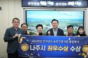 나주시가 농업 경쟁력 강화와 매력 있는 농촌 구현에 힘써온 결실로 2025년 전라남도 농촌진흥사업 종합평가에서 최우수상을 받았다. 지난해 7월 농축산식품국과 농업기술센터의 분리 조직개편으로 농업행정과 산하에 재편된 농촌진흥팀은 이번 수상을 통해 1년 반 만에 전문적인 업무 역량을 대외적으로 인정받았다. 26일 나주시에 따르면 이번 평가는 올 한 해 도내 각 시군 농업기술센터에서 추진한 농촌진흥사업 성과를 시상하는 제도다. 평가 항목은 농촌진흥청 지표인 ‘기술보급 기반 확대 노력도’, ‘현장 애로 해소 및 신기술 확산 실적, ’농촌자원 활성화‘, ’농업재해 대응 및 병해충 예방실적‘, ’전문역량 개발 및 청년농업인 육성‘ 등 주요 평가 항목에도 자체 지표를 더해 총 13개 항목으로 구성됐다. 나주시는 특히 농업재해 대응과 병해충 예방 실적, 전문 역량 개발 및 청년 농업인 육성 분야에서 뛰어난 성과를 거두며 전 지표에 걸쳐 고른 실적을 달성했다. 전체 면적의 약 43%가 농림 지대인 나주시는 전국 최대 배 재배 지역이자 도내 벼 재배 규모 3위, 미나리와 고추는 1위를 기록하는 등 도내 최대 농산물