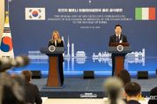 이재명 대통령은 19일 조르자 멜로니 이탈리아 총리와의 정상회담 뒤 "저와 멜로니 총리는 전략적 동반자 명칭에 부합하는 미래지향적 수준으로 양국 관계를 더욱 발전시켜 나가기로 합의했다"고 밝혔다. 이 대통령은 이날 청와대에서 멜로니 총리와의 정상회담 후 '공동 언론 발표'에서 이같이 말했다. 이 대통령은 "교역 분야 협력은 양국 경제규모와 브랜드 파워에 걸맞은 수준으로 더욱 확대하기로 했다"며 "이를 위해 양국 기업이 참여하는 한-이탈리아 비즈니스 포럼을 새 기회 창출의 장이자 기업 애로 상담 창구로 활성화하는 데 뜻을 모았다"고 밝혔다. 이어 "특히 중소기업 생태계가 잘 발달한 이탈리아의 강점을 바탕으로 중기 육성과 지원에 관한 협력도 함께 추진해 나갈 것"이라고 말했다. 이 대통령은 또 "국가 미래가 달린 과학분야 협력이 더욱 확대될 것"이라며 "기초응용분야 공동연구지원을 통해 역량 있는 연구자를 지속 발굴하고 인공지능, 우주항공 같은 첨단산업으로 협력의 지평을 더욱 넓혀가겠다"고 밝혔다. 이어 "방산 분야에서도 서로 강점에 기초해 상호 보완적 협력을 이뤄내도록 할 것"이라고 덧붙였