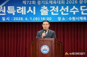 수원특례시의회는 1일 수원시체육회관 2층 대회의실에서 열린 '제72회 경기도체육대회 수원시 선수단 결단식'에 참석해 선수단을 격려하고 선전을 기원했다. 이번 결단식은 오는 4월 16일부터 18일까지 광주시에서 열리는 제72회 경기도체육대회를 앞두고 수원시 선수단의 각오를 다지고 사기를 높이기 위해 마련됐다. 이날 행사에는 수원특례시의회 의장을 비롯해 수원시장, 수원시체육회장, 체육회 임원, 선수단 등 약 180여 명이 참석했으며, 출전보고와 단기 수여, 선수대표 선서 등이 진행됐다. 특히 수원시는 총 473명의 선수단이 출전해 27개 종목에서 기량을 겨룰 예정이다. 수원특례시의회는 결단식에 참석해 선수단의 사기를 북돋고, 시민과 함께하는 체육도시 수원의 위상을 높이기 위한 응원의 뜻을 함께했다. 이재식 의장은 축사를 통해 “그동안 흘린 땀과 노력이 결실을 맺을 시간이 다가왔다”며 “수원 선수단이 최고의 기량과 스포츠 정신으로 대회에 임해 시민들에게 큰 감동을 전해주길 바란다”고 말했다. 이어 “결과도 중요하지만 정정당당한 경기와 서로를 믿는 팀워크가 더욱 빛날 것”이라며 선수단의 선전을 응원했다.