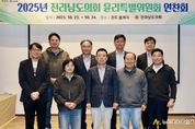 전라남도의회 윤리특별위원회(위원장 김인정, 더불어민주당·진도)는 10월 23일부터 24일까지 이틀 동안 진도군 일원에서 청렴 의정 강화 연찬회를 개최했다. 이번 연찬회는 의원 개개인의 윤리의식을 높이고 청렴 의정을 제도적으로 뒷받침하기 위해 마련된 자리다. 윤리특별위원회의 역할과 책임을 다시금 되새기고 향후 활동 방향을 모색하는 뜻깊은 시간이 됐다. 김영모 한국미래지식원 대표를 초청해‘청렴으로 만드는 조직 경쟁력’을 주제로 특강을 진행하고, 청렴한 공직문화 정착과 윤리특위의 발전적 운영 방향 등을 논의했다. 김인정 위원장은“지난해 전라남도 의회가 국민권익위원회 청렴도 평가에서 종합청렴도 1등급을 달성한 것은 윤리의식을 높이기 위한 노력을 도민이 긍정적으로 평가해 준 결과”라며, “앞으로도 도민 앞에 당당한 의회가 될 수 있도록 매진하겠다”고 밝혔다. 한편, 제12대 전라남도의회 제4기 윤리특별위원회는 △위원장 김인정(진도) △부위원장 이재태(나주3) △강정일(광양2) △신민호(순천6) △오미화(영광2) △조옥현(목포2) △이현창(구례) △김회식(장성2) △임지락(화순1) △진호건(곡성